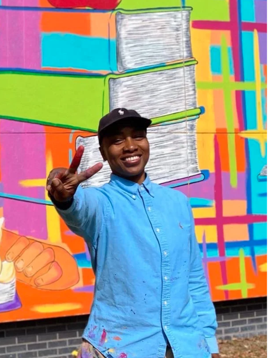 Born and raised in New Orleans, Artist Journey Allen is a local visual artists, muralist, and arts educator whose vibrant depictions of the city's celebratory culture was inspired by her childhood experiences of attending second lines, Super Sunday Black Mardi Gras Indian Street Exhibitions, and taking walks through the French Quarters with her mother and younger brother. Journey's works can be identified by the intense colors of her signature abstract design that is often woven into the foreground or background of many of her compositions.