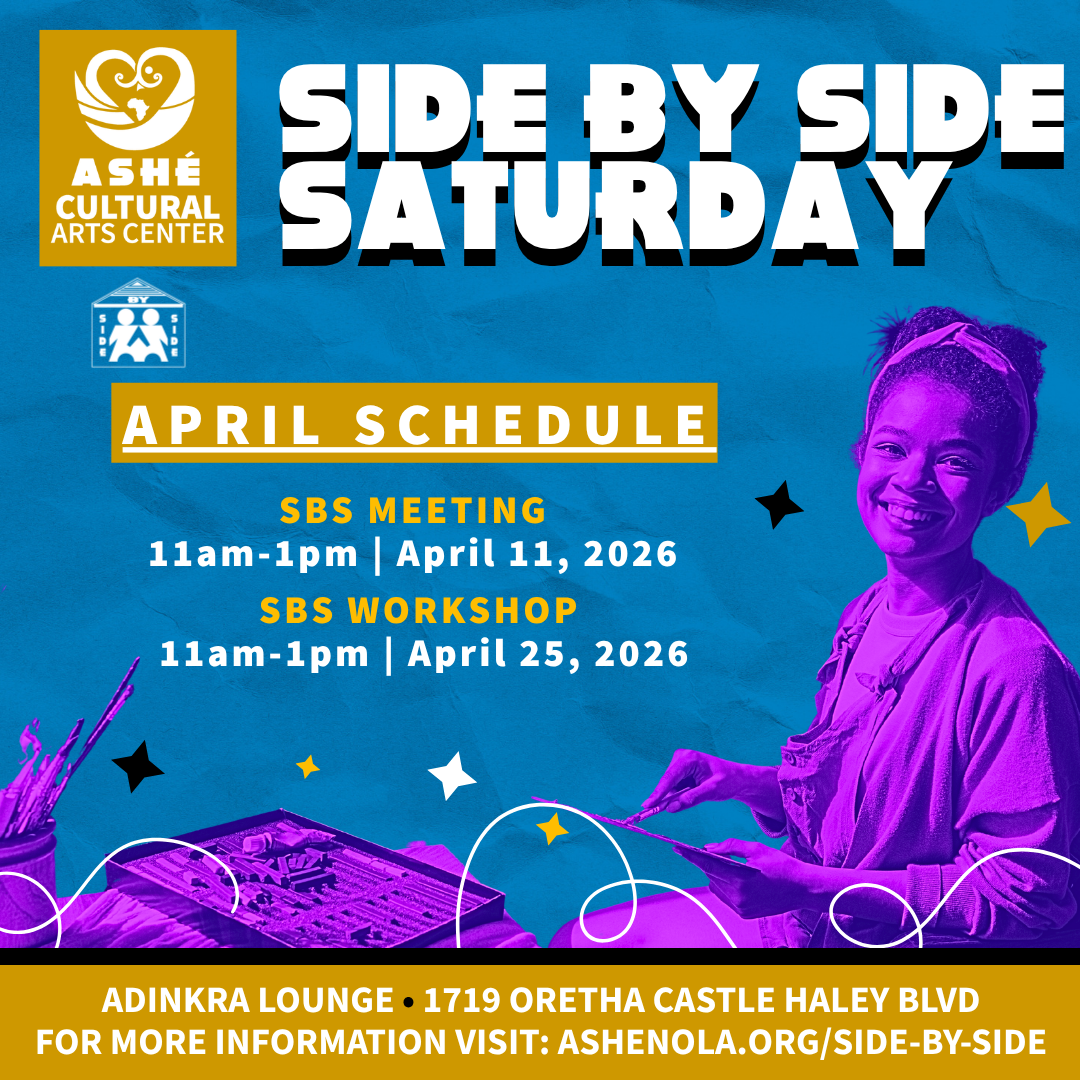 Interested in joining the Side by Side Artist Program? Network and collaborate with visual artists, culture bearers, professionals, and more at Ashé Cultural Arts Center!